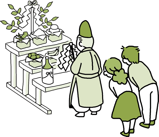 当日は宮司様へ玉串料をお納めいただきます。また、お神酒として一升瓶をご用意いただきます。