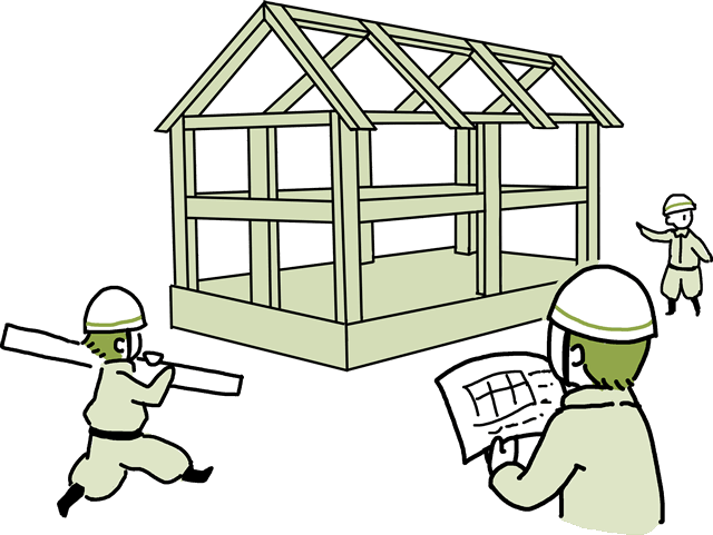 上棟は、家に柱を立てる日です。大工が複数名集まり、工場で加工した構造材を一気に組み上げるため、1日で建物の形が現れます。
