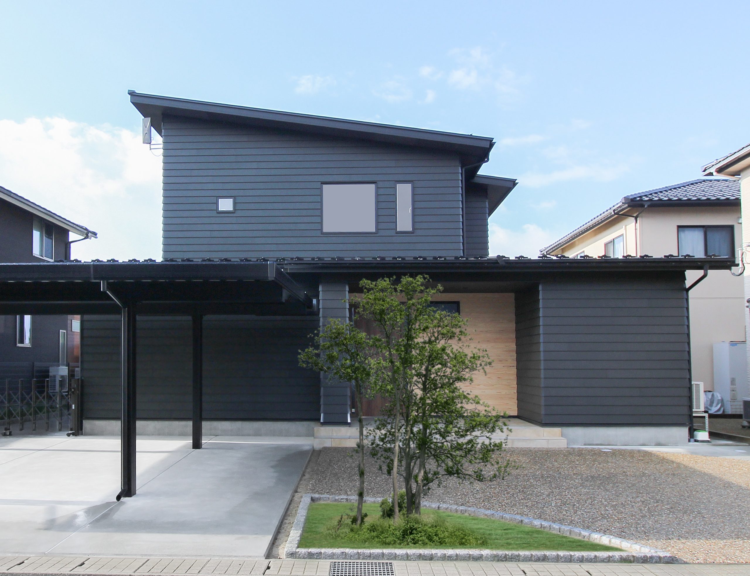 瓦では実現できない緩勾配の1階屋根(引用元: 家族で豊かな時間を過ごす為に様々な工夫を取り入れた家)