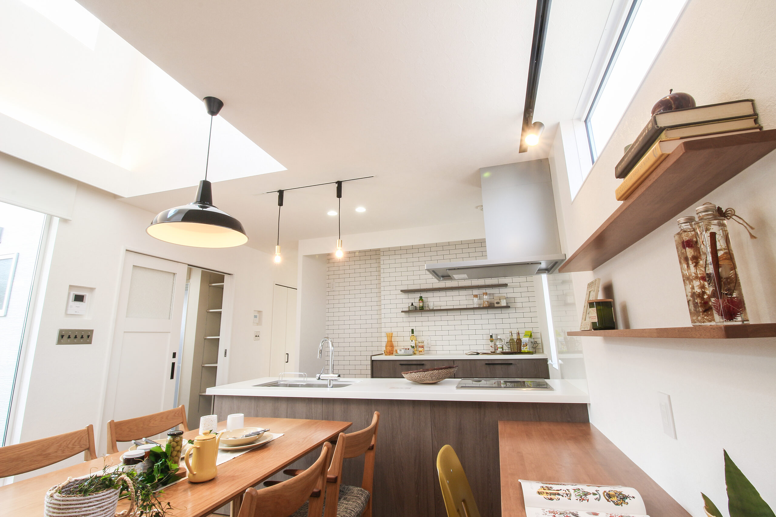キッチンと横並びにダイニングテーブルを配置するスタイル(引用元:周りからの視線を気にせず開放的に暮らせる家)