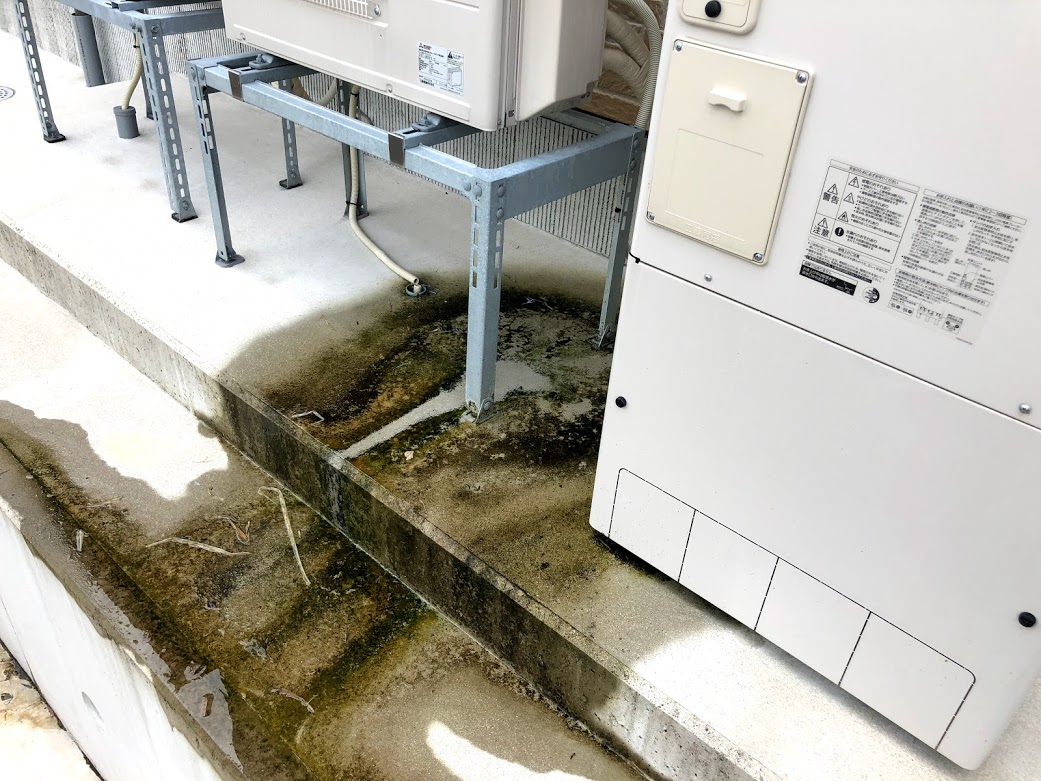 - 冬場はヒートポンプユニットの背面に霜が付いて、日中の気温上昇にともなって霜が溶け、水浸しになる
