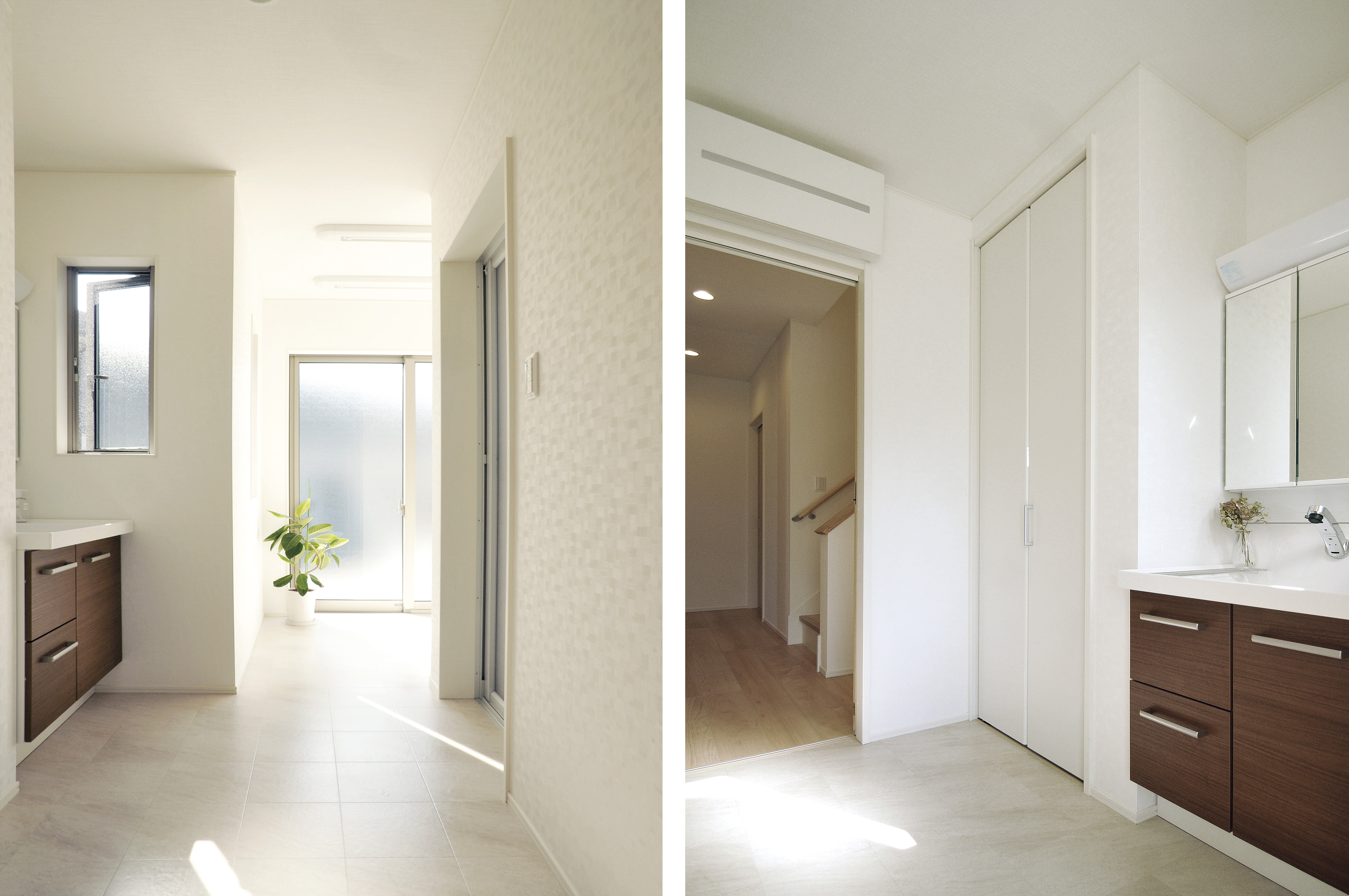 動線の他に気にして欲しいのが日射の問題です。当然ですが、強い日差し(特に西日)が差し込む場所にサンルームをつくると洗濯物は良く乾くからですす。西面には日射を取り入れられる大きな窓だけでなく、換気に有効な窓や換気扇、除湿器用のコンセントを設置するとより使いやすいサンルームになります。