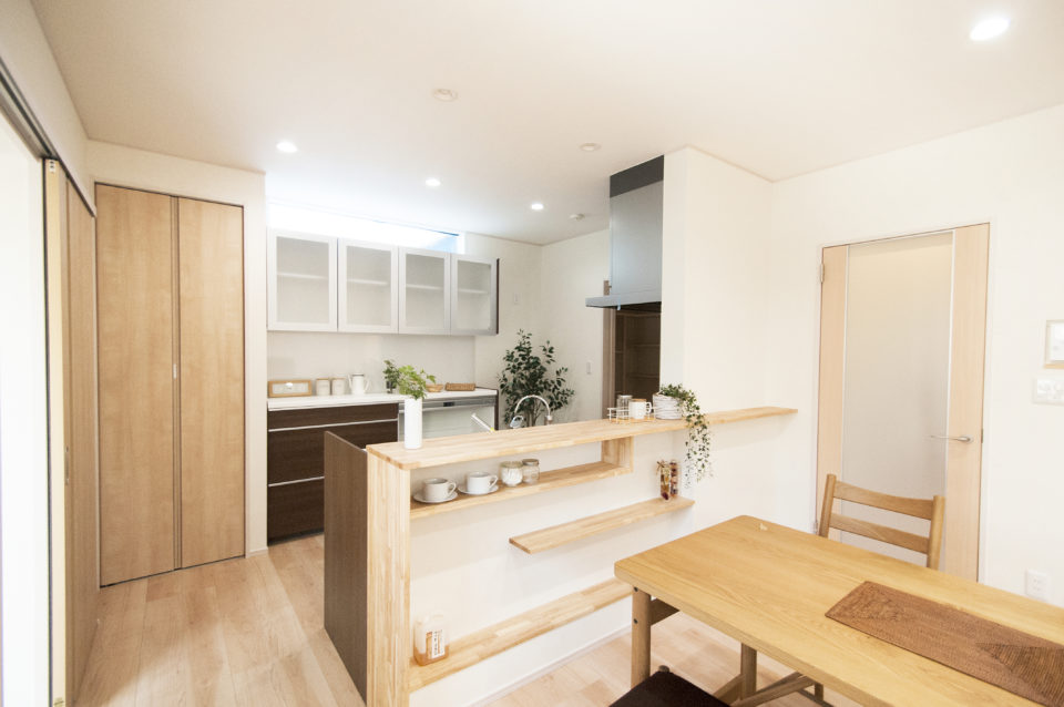 腰壁を利用した対面キッチン(引用元:シティハウス産業HP施工事例)