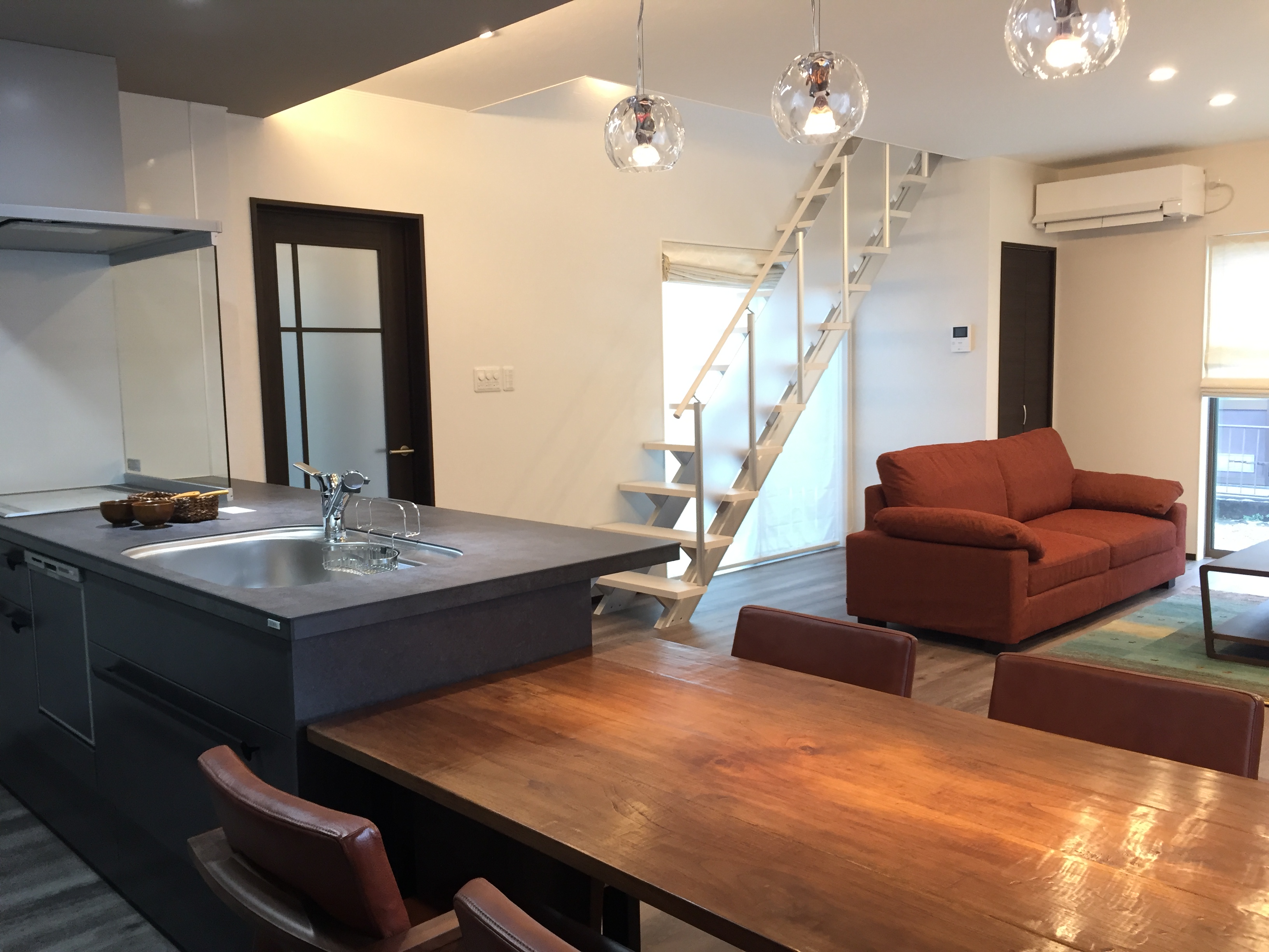 子供が学校から帰って直接自分の部屋へ行けるのではなく、家族と顔を合わせる機会を増やしたいという考えの方に最適なスタイルでとても人気があります。鉄骨階段やアルミ製階段を採用すると南面に面した大きなテラス窓付近にも階段を設置出来たりするので、空間をより有効的(広く)使う事が出来ます。