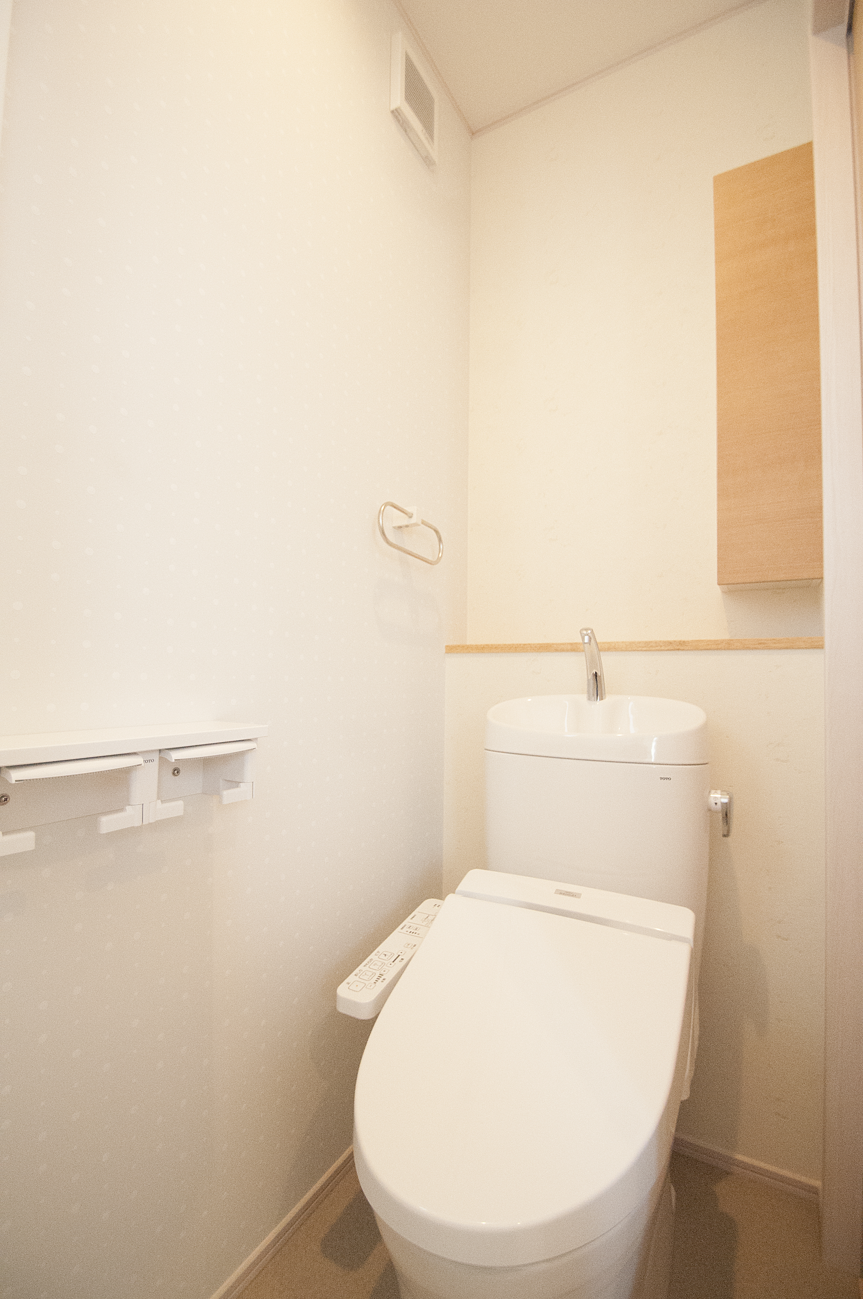タンクレストイレは1階に採用される事が多く、後ろにタンクがないため空間を広く使えたり、デザイン的にも優れているのでとても人気があります。