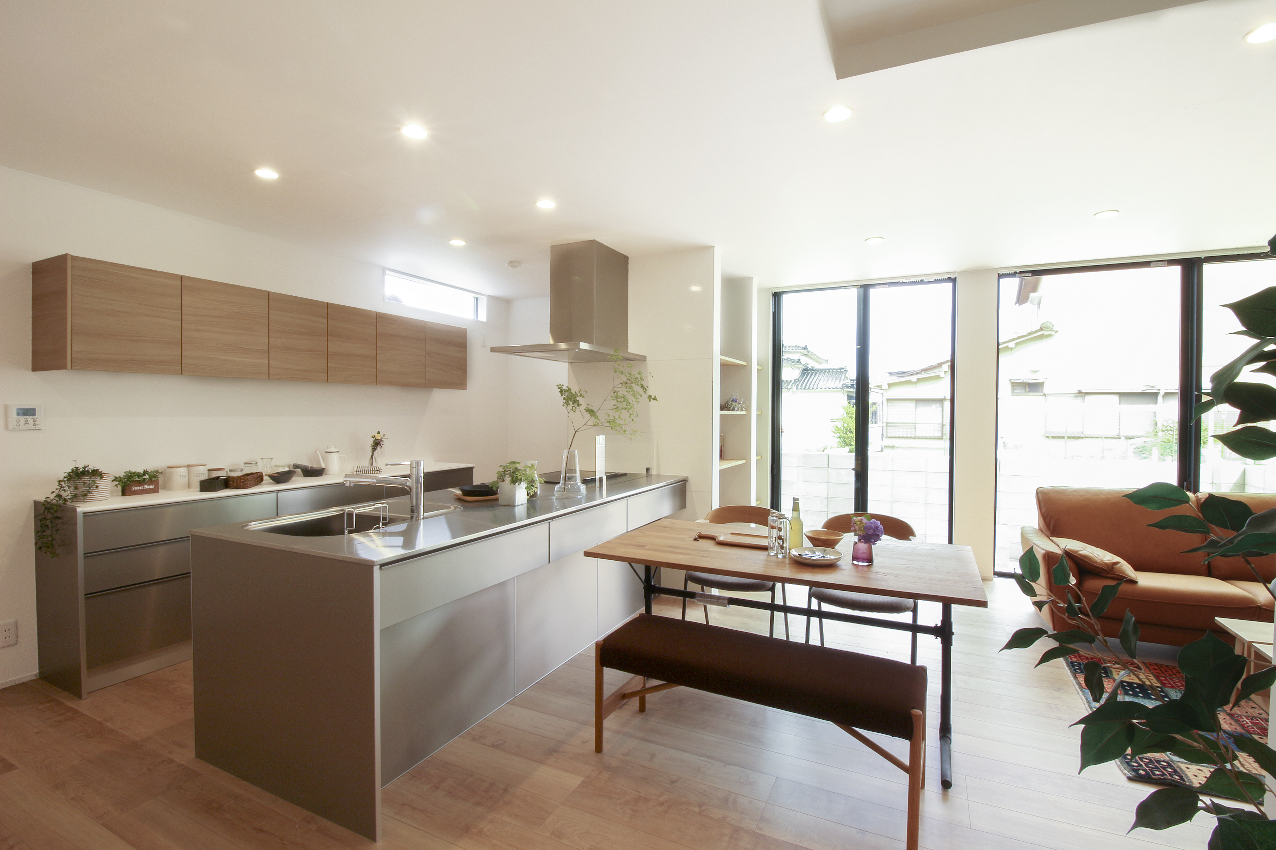 - 吊り戸棚を設置しない事よって、開放感を感じられるキッチンとなる