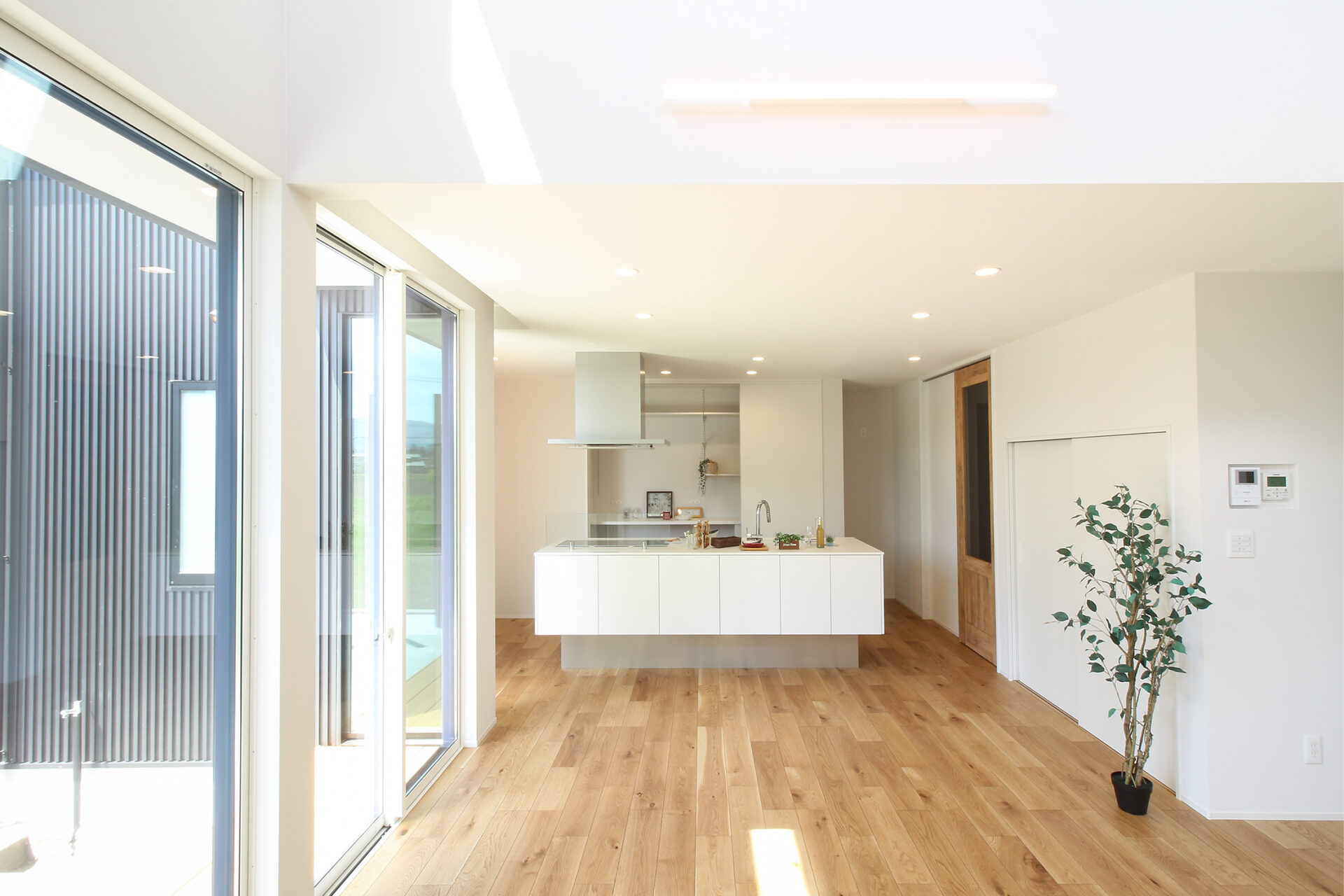 白を基調とした内観とオークの床の相性がバッチリ