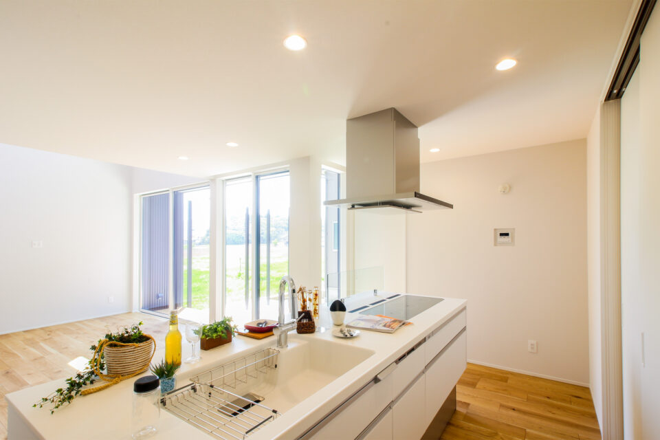 キッチンはパナソニックのラクシーナを採用。壁がないアイランドスタイル+フロートプランは広い空間をより広く感じられます。