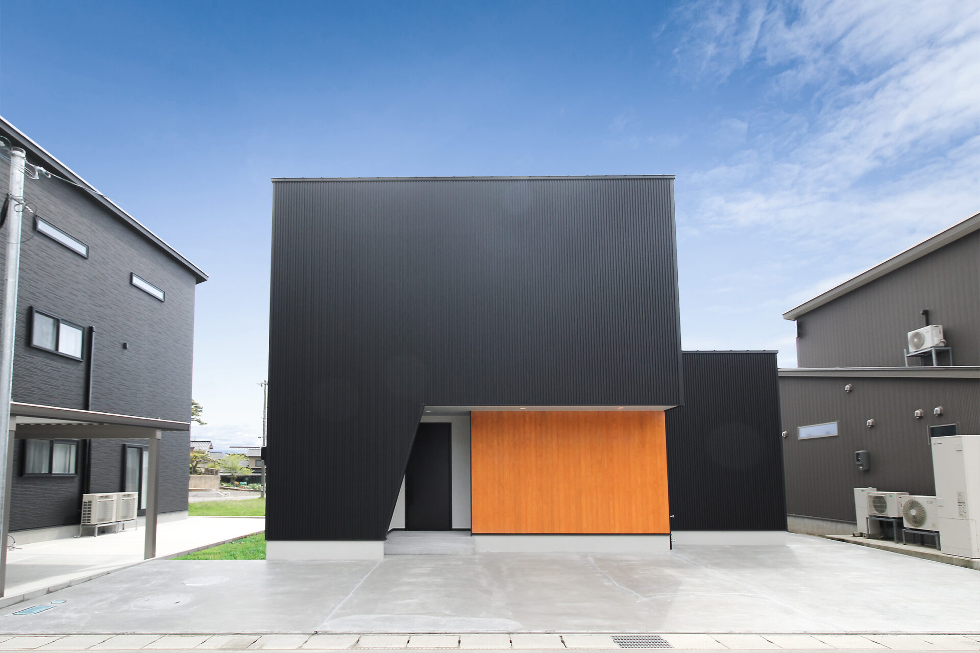 ガルバリウム鋼板と杉羽目板の組み合わせが好印象