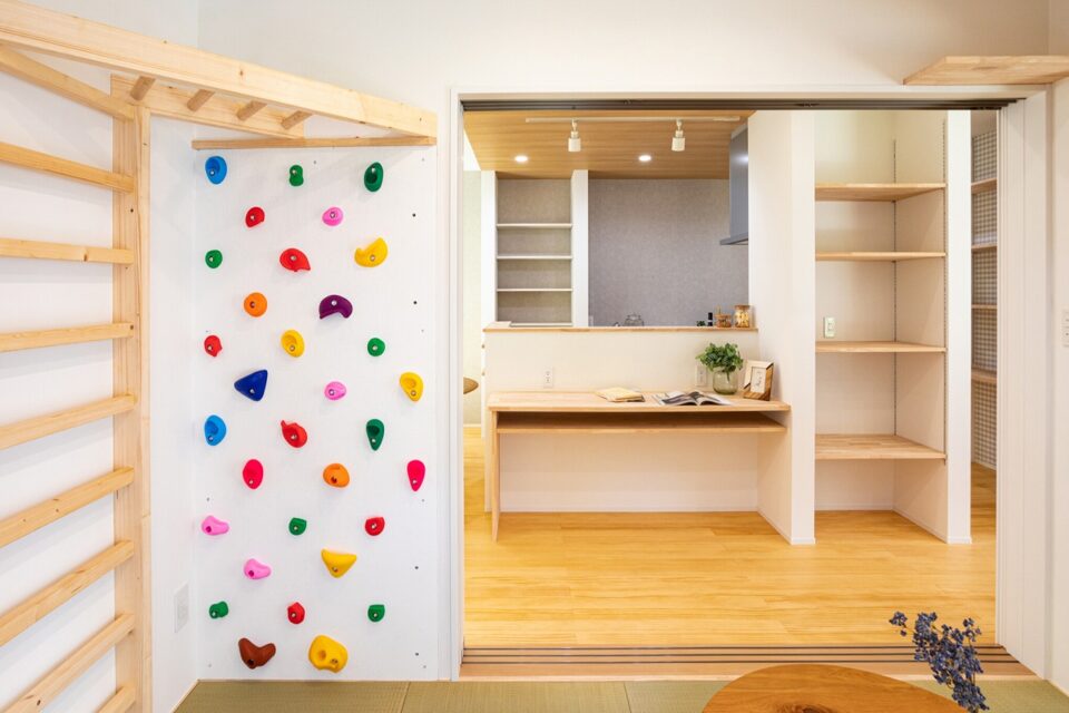 リビングに繋がる和室の一角にはキッズスペースを設けました。