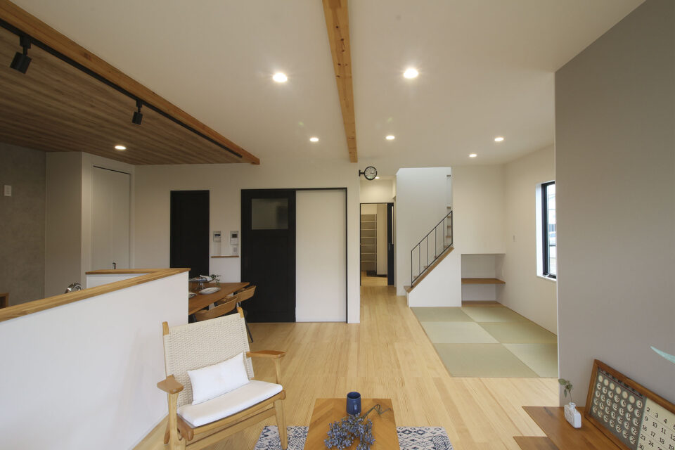 リビングの一角にはフラットな畳コーナーを設置。フラットなので洋風にもよく馴染みます。