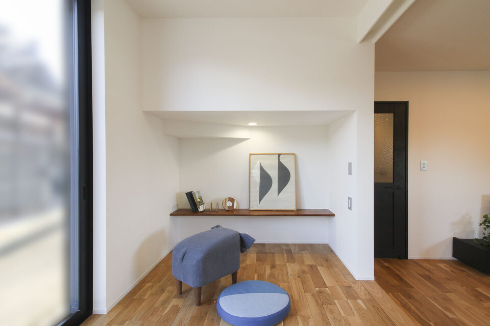 リビング横には小上がりのフリースペースを設け、お子様が自由に遊んだり家事のひと休みに。