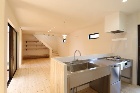 玄関からリビングまで広い土間スペースを作って、趣味の自転車を修理したり、薪ストーブをおいてみたり、家事のしやすい行き止まりのない間取りにしたりと趣味や生活に合わせた設計ができます。