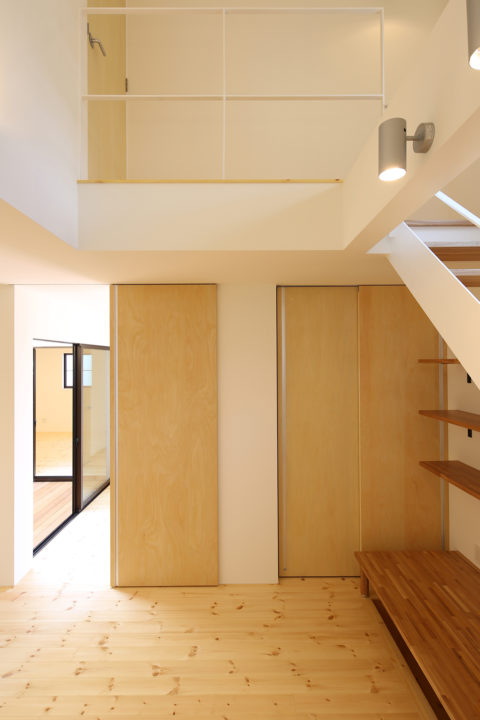 大きな三角形の屋根は外観を印象的なものにするだけではなく、リビングに吹抜やロフトを設けることが可能です。