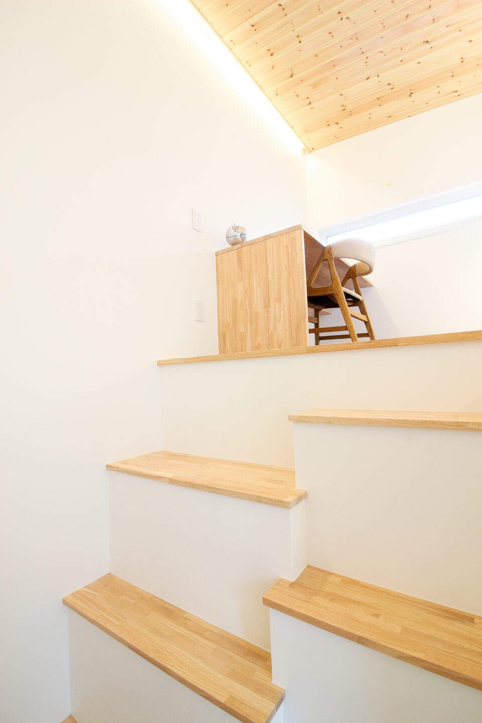 中2階へと昇る遊び心たっぶりのステップ階段