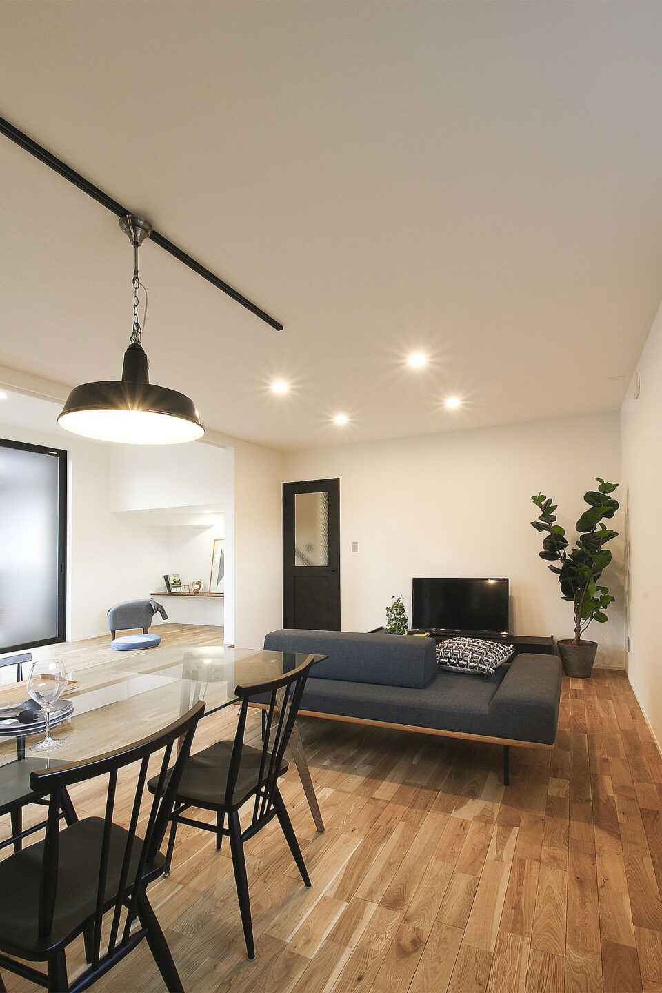 ダイニングスペースには個性的なペンダントライトを採用し食卓を優しく照らしてくれます。