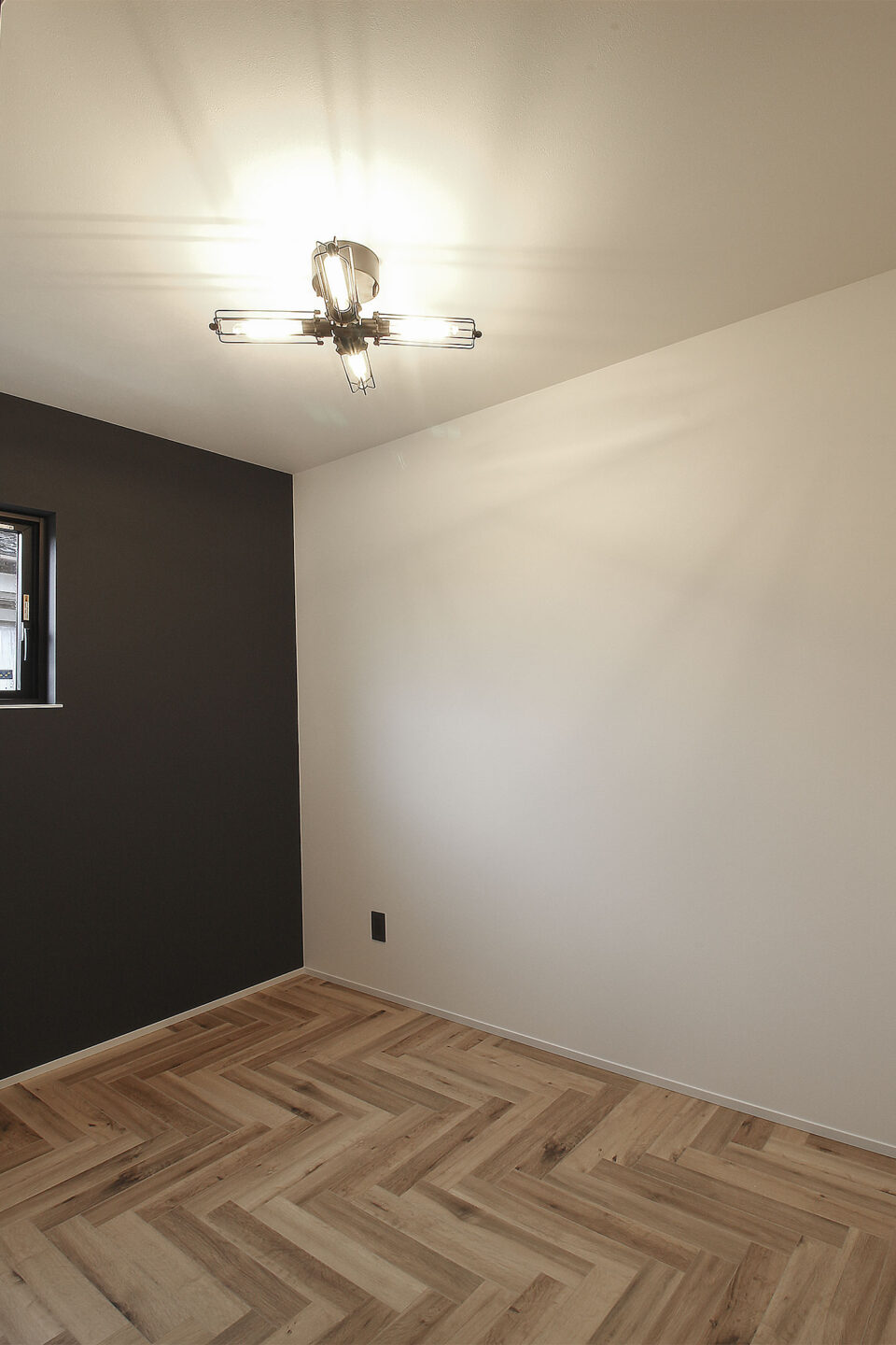 床にはフロアタイルを採用。落ち着いたダークカラーでまとめることで空間全体を引き締め、スタイリッシュでかっこいい雰囲気を演出。