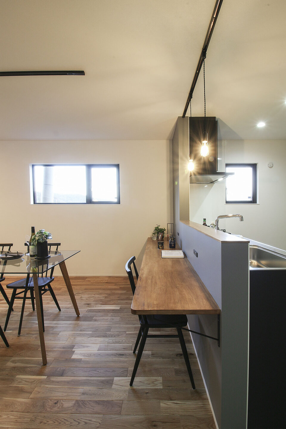 家事をしながらお子様の宿題を見守れるのが魅力な造作カウンター。