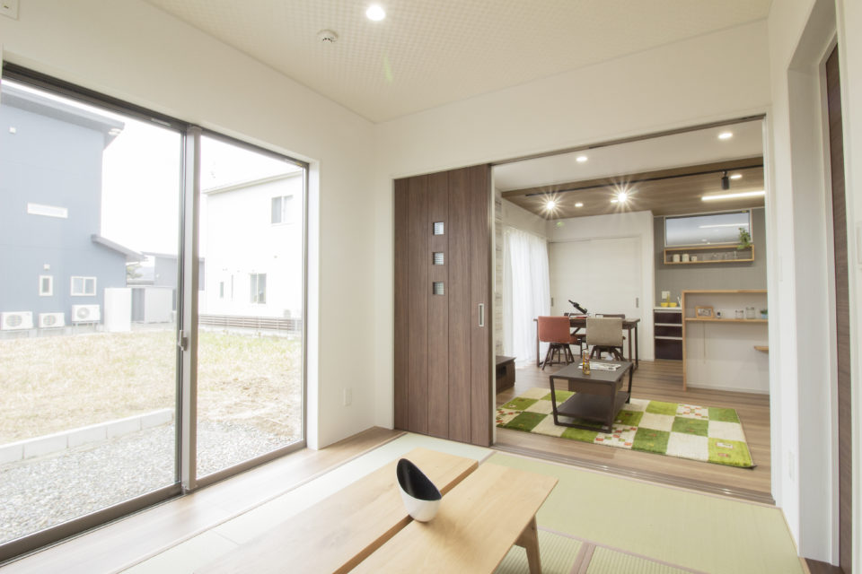 リビング横に和のスペース。ちょっと寛ぐことができる和モダンな和室です。